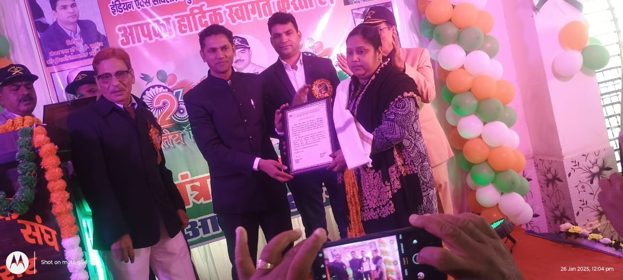मुख्य अतिथि के रूप में डी एस पी मुख्यालय द्वारा अंतरराष्ट्रीय खिलाड़ी सौम्या को अंग वस्त्र से सम्मानित करते हुए मां मुंडेश्वरी अस्पताल में ब्लड बैंक की सुविधा होने पर रक्त दान करने वाले रक्त वीरों को भी अंग वस्त्र और प्रशस्ति पत्र द्वारा सम्मानित किया गया । एस डी एम साहब और डी एस पी पंकज कुमार सिंह द्वारा सभी वीरांगनाओं को अंग वस्त्र से सम्मानित किया गया । डी एस पी महोदय ने बताया कि सैनिक वेलफेयर के लिए सहायता केंद्र खुल चुका है जहां पर सैनिकों की मदद शीघ्र की जाएगी । अध्यक्ष महोदय द्वारा सभी सैनिकों को गणतंत्र दिवस की हार्दिक बधाइयां दी गई तथा सैनिक वेलफेयर पर विस्तृत जानकारियां दी गई । मेजर पी के पाण्डेय साहब ने समारोह में उपस्थित सभी सम्मानित विशिष्ट अतिथि, मुख्य अतिथि गण , सभी पूर्व सैनिकों एवम वीरांगनाओं को हार्दिक बधाइयां दी । संगठन के सभी वरिष्ठ पदाधिकारीगण द्वारा सभी अतिथियों एवं सैनिकों को बधाइयां दी गई । संगठन में सर्वश्रेष्ठ कार्य करने पर डुमरांव अनुमंडल से सूबेदार दिना नाथ सिंह, राजपुर प्रखंड से नायब सूबेदार सीता राम साहू, ब्रह्मपुर प्रखंड से नायक रमेश नाथ मिश्रा, चौगाई प्रखंड से लेफ्टिनेंट गुप्त नारायण सिंह, वीरांगना अध्यक्ष श्रीमती रिंकी देवी को प्रशस्ति पत्र और अंग वस्त्र से एस डी एम साहब द्वारा सम्मानित किया गया । पी सी डी ए प्रधान नियंत्रक माननीय संदीप सरकार साहब, पी सी डी ए के सभी अधिकारीगण और कर्मचारीगण एवम अधिकारी श्री मनोज सिंह साहब की काफी सराहना की गई । भारत माता की जय, वंदे मातरम, सैनिक एकता जिंदाबाद, आई ई एस एम जिंदाबाद के गगन भेदी नातों से सारा वातावरण गुंजयमान रहा । अंत में सभापति कैप्टन बी एन पांडेय द्वारा समारोह समाप्ति की घोषणा कर दी गई । मौके पर उपाध्यक्ष जे पी सिंह, उपाध्यक्ष लेफ्टिनेंट आर बी ओझा, कोषाध्यक्ष आर बी सिंह, महासचिव श्रीनिवास सिंह, उपकोषाध्यक्ष सुरेंद्र सिंह, सचिव हरेंद्र मिश्रा, उप चेयरमैन नायब सूबेदार बलि राम मिश्रा , रेड क्रास सचिव श्रवण तिवारी,श्री बंटी शाही जी, राज नेता संजय सिंह, मनोज उपाध्याय, तनिष्क के मालिक श्री दीपक पाण्डेय, त्रिलोकी मिश्रा, डुमरांव अनुमंडल अध्यक्ष कमलेश्वर राय, डुमरांव अनुमंडल चेयरमैन सूबेदार अजय पाण्डेय,चौगाई प्रखंड अध्यक्ष कैप्टन कन्हैया पंडित, अध्यक्ष राजपुर प्रखंड हरिहर सिंह, अलख नारायण श्रीवास्तवा, ईश्वर दयाल सिंह, लाल बिहारी राय, भारत मिश्रा , राम नाथ सिंह, फूल बदन सिंह, तारा बाबू, गणेश सिंह, शिव मुनि राय, शिव कुमार, राधा मोहन पासवान, सिमरी प्रखण अध्यक्ष त्रिवेणी दुबे, द्वारिका पाण्डेय, चौसा प्रखंड अध्यक्ष एस एस यादव , राजपुर प्रखंड अध्यक्ष चंद्रजीत सिंह, रवि कांत राय,श्री किशन लाल, रिंकी 