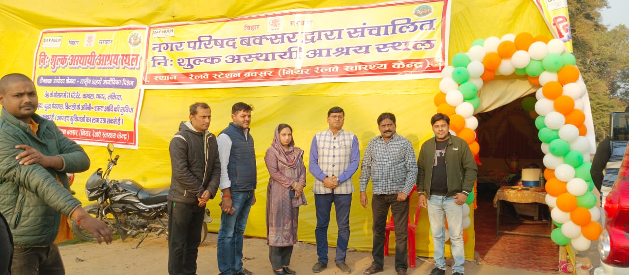 आज माननीय सभापति महोदया द्वारा अस्थाई रैन बसेरा का उद्घाटन किया गया। रैन बसेरा भारत सरकार द्वारा चलाए गए NULM (National Urban Livelihood Mission ) के तहत शीत लहर में गरीब, असहाय, एवं ऐसे लोग जिनके पास रात में सोने के लिए छत नहीं है, उनके लिए 30 बेड, कंबल, चादर सहित एवं पानी, शौचालय आदि की सुविधा सहित निःशुल्क रात में सोने की व्यवस्था की गई है। ये रैन बसेरा बक्सर रेलवे स्टेशन के सामने खाली मैदान में निर्मित है। यह पर महिलाओं, पुरुषों, एवं ट्रांसजेंडर के सोने के लिए अलग अलग व्यवस्था है। ये व्यवस्था नवंबर से फरवरी तक शीत लहर तक निःशुल्क संचालित रहेगा।