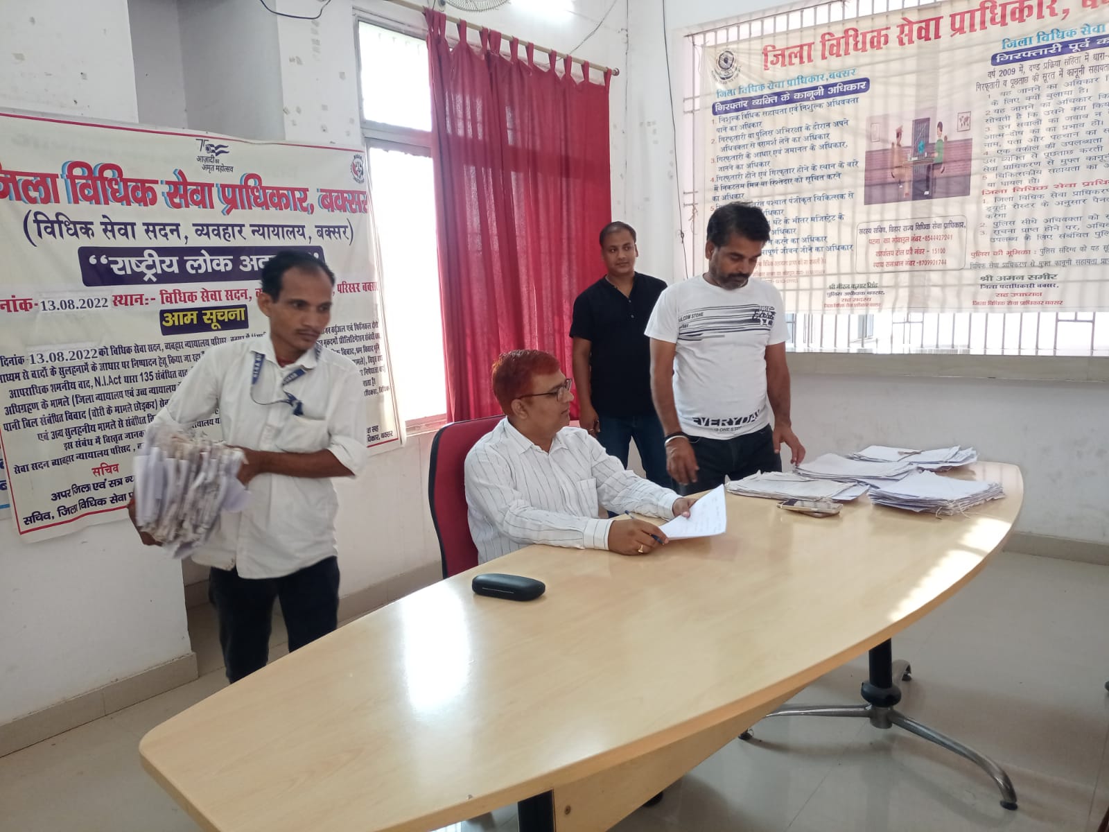 बिहार राज्य विधिक सेवा प्राधिकार, पटना के निर्देशानुसार वर्ष 2022 में जिला विधिक सेवा प्राधिकार, बक्सरविधिक जागरूकता कार्यक्रम का आयोजन जिले के प्रत्येक प्रखंडों, चौक चौराहों, सभी छठ घाटो पर कर रहा है। जागरूकता कार्यक्रम के सफल आयोजन के लिए आज स्थानीय कार्यालय, व्यवहार न्यायालय, बक्सर स्थित विधिक सेवा सदन में धर्मेंद्र कुमार तिवारी अपर जिला एवं सत्र न्यायाधीश -सह- सचिव, जिला विधिक सेवा प्राधिकार, बक्सर द्वारा कार्यालय में कार्यरत पैनल अधिवक्ताओं एवं पारा विधिक स्वयंसेवकों को विधिक जागरूकता कार्यक्रम हेतु विशेष प्रशिक्षण दिया गया।प्रशिक्षण के दौरान माननीय द्वारा कहा गया की इस विधिक जागरूकता कार्यक्रम को हम अपने पैनल अधिवक्ता एवं विधिक स्वयंसेवकों के माध्यम से अपने जिले के प्रत्येक घरों में जाएंगे और उनसे एक दिया विधिक सेवा के नाम जलाने के लिए आग्रह करेंगे। कार्यक्रम में आगे उन्होंने बताया कि इस दौरान हम सब राष्ट्रीय लोक अदालत, विधिक सेवा का उद्देश्य, बिहार राज्य पीड़ित प्रतिकर योजना, नालसा, केंद्र सरकार, बिहार सरकार द्वारा चलाई जा रही अन्य जन कल्याणकारी योजनाओं के बारे में भी लोगों को इस विधिक जागरूकता कार्यक्रम के माध्यम से बताएंगे। मौके पर पैनल अधिवक्ता आरती राय, कंचन कुमारी, कुमारी अरुणिमा, मनोज कुमार श्रीवास्तव, विद्यासागर तिवारी, वही पारा विधिक स्वयंसेवक अविनाश, हरे राम, मदन प्रजापति, गजेंद्र नाथ दुबे, कविन्द्र नाथ पाठक, अनिल कुमार पांडे, दीपक कुमार आदि मौजूद रहे।