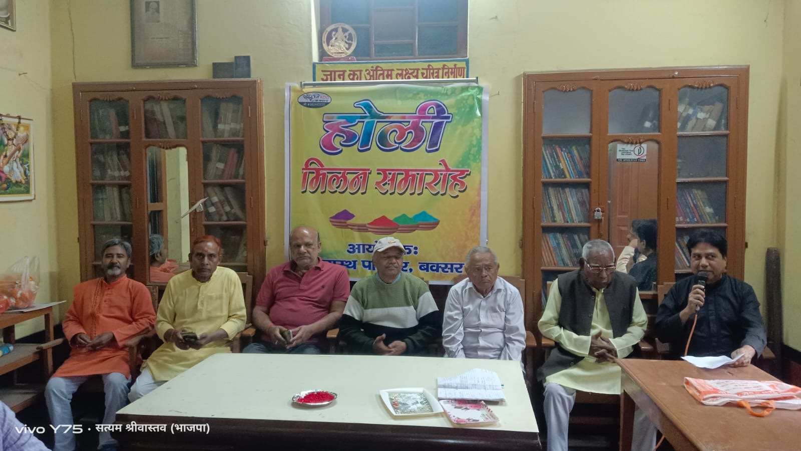 सरस्वती पुस्तकालय में सभ्यता और संस्कृति के अनुसार पारंपरिक तरीके से कायस्थ परिवार बक्सर के संयोजक सुमन कुमार श्रीवास्तव के नेतृत्व में होली मिलन समारोह आयोजित की गयी!जिसकी अध्यक्षता ग्रामीण बैंक के सेवा निवृत प्रबंधक सत्यनारायण सिन्हा व संचालन वैदेही श्रीवास्तवके द्वारा किया गया! समारोह कार्यक्रम में मुख्य अतिथि डाॅ० सुधीर कुमार सिन्हा, सेवानिवृत्त अध्यापक श्री धन्नू लाल,से नि ग्रामीण बैंक सुनिल भूषणसहाय, प्रधान लिपिक सिचाई विभाग सेवा निवृत सन्त प्रसाद सिन्हा, से नि पोस्ट आफिस संजय कुमार सिन्हा, ,सरस्वती पुस्तकालय के अध्यक्ष सुभाष गोयल उपस्थित रहे, इस अवसर पर कायस्थपरिवार समिति के सदस्यों के द्वारा सभ्यता और संस्कृति को जिन्दा रखने के लिए सभी मुख्य अतिथि सह वरिष्ठ नागरिकों को अंगवस्त्र और पुष्पहार देकर सम्मानित किया गया उसके पश्चात् कायस्थ परिवार के सदस्यों ने एक दूसरे को अबीर गुलाल लगाकर कर होली की शुभकामनाएं दी! समारोह के दौरान जिला संयोजक, एवं मुख्य अतिथियों के द्वारा कहा गया कि होली एक ऐसा पर्व है जिसमें सभी लोग आपसी मनमुटाव को भुलकर एक दूसरे को भाईचारा और प्रेम में बंध जाते हैं कार्यक्रम के पश्चात कायस्थ परिवार के सदस्यों के द्वारा भगवान चित्रगुप्त जी की मंदिर में प्रत्येक बृहस्पति वार की तरह आज 49 वां बृहस्पति वार को सामूहिक आरती की गयी ! होली मिलन समारोह व आरती में मुख्य रूप से कायस्थ परिवार के अध्यक्ष सुरेंद्र श्रीवास्तव, सचिव राजेश कुमार सिन्हा,कोषाध्यक्ष प्रकाश सिन्हा,कार्यालय प्रभारी सौरभ सिन्हा, कृष्णा श्रीवास्तव,मीडिया प्रभारी सत्यम श्रीवास्तव , मदन मोहन श्रीवास्तव, सुनील प्रसाद सिन्हा, अजय लाल , जय प्रकाश सिन्हा, राहुल सिन्हा , बंसत चौबे,उपेन्द्र श्रीवास्तव, गोविन्द जयसवाल,अनिल कुमार श्रीवास्तव, रामकृपाल श्रीवास्तव, अभिषेक सिन्हा,अलावे सैकड़ों सदस्य उपस्थित रहे।