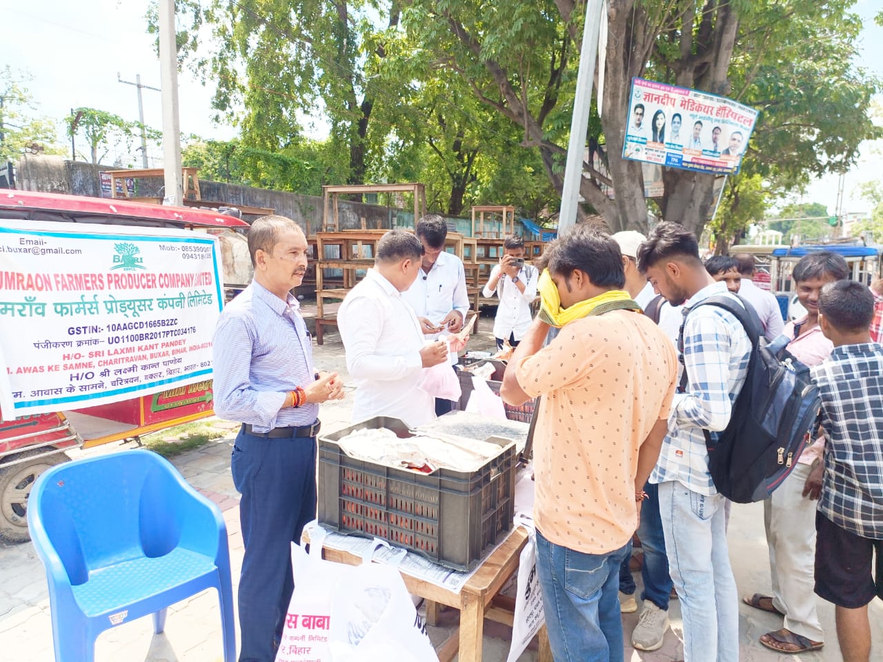 बक्सर-बक्सर स्थित नगर भवन के सामने डुमराव फार्मर एफ पी ओ तथा रविदास बाबा एफ पी ओ द्वारा टमाटर बिक्री हेतु स्टाल लगाया गया। स्टाल पर खरीदारों की अत्यधिक भीड़ थी। जिला कृषि पदाधिकारी श्री मनोज कुमार ने बताया कि जिला प्रशासन के सहयोग से उपरोक्त एफपीओ द्वारा बिक्री स्टाल लगाया गया है। बक्सर वासियो के लिए यह प्रयास नेक है। मौके पर खरीदारों ने कहा कि महंगाई के दौर में प्रशासन द्वारा किया गया गया प्रयास अनुकरणीय है। मौके पर पुतुल कुमार पांडेय,राकेश शुक्ला, संजय कुमार श्रीवास्तव, राजीव कुमार, चंदन कुमार सिंह, त्रिपुरारीशरण सिंह सहित सैकड़ों की संख्या में खरीदार उपस्थित थे।