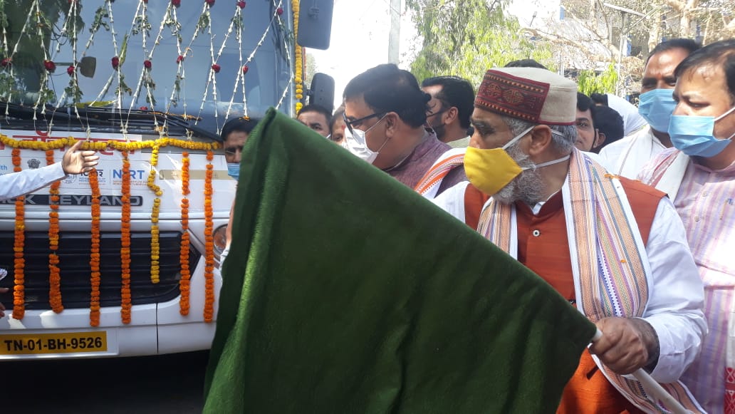 केंद्रीय स्वास्थ्य राज्य मंत्री अश्विनी चौबे ने टीबी के प्रति लोगों में जागरूकता के लिए चलंत मोबाइल बैन को हरी झंडी दिखाकर किया रवाना