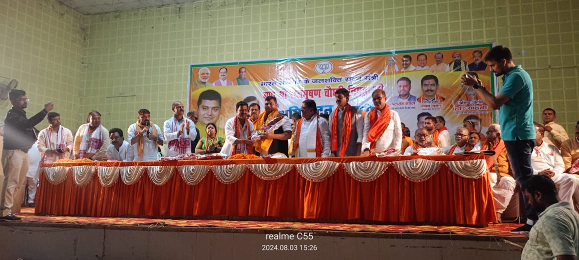 सावन के रिमझिम झमाझम बरसात के साथ आज पूर्व से प्रस्तावित भारतीय जनता पार्टी जिला बक्सर की विस्तृत जिला कार्य समिति तथा केन्द्रीय जल शक्ति राज्य मंत्री का अभिनंदन समारोह कार्यक्रम नगर भवन बक्सर में हुई। जिसमें मुख्य अतिथि के रुप में राजभूषण निषाद केंद्रीय जल शक्ति राज्य मंत्री, हरि सहनी अति पिछला कल्याण मंत्री, जीवन कुमार एम.एल.सी.शिक्षक निर्वाचन क्षेत्र गया, हरेन्द पाण्डेय,मिथलेश तिवारी सड़क के सांसद सह प्रदेश महामंत्री, राजेश वर्मा प्रदेश महामंत्री उपस्थित रहें। कार्यक्रम की शुरुआत श्यामा प्रसाद मुखर्जी एवं पंडित दीनदयाल उपाध्याय के तैल चित्र पर पुष्पांजलि अर्पित कर किया गया। सबसे पहले स्वागत भाषण में भारतीय जनता पार्टी के जिला अध्यक्ष विजय कुमार सिंह उर्फ भोला सिंह ने कार्यसमिति में आऐ हुए कार्यकर्ताओं और नेताओं का गर्मजोशी से स्वागत किया तथा कार्यक्रम को सफल बनाने के लिए धन्यवाद दिया। उन्होंने अफसोस जाहिर करते हुए कहा कि लोकसभा चुनाव में बहुत कम वोटों के मार्जिन से चुनाव हार गए लेकिन हताश होने की जरुरत नहीं है।आने वाले विधानसभा चुनाव में हम सभी कार्यकर्ता फिर से एक बार पूरे जोश के साथ लगेगें और भाजपा का परचम लहराऐंगे। श्री सिंह ने बिहार के पूर्वर्ती सरकार पर कटाक्ष करते हुए कहा कि और दलों में परिवार के लोग भी एम.एल.ए,एम.एल.सी, विधायक और सांसद बनते हैं लेकिन भारतीय जनता पार्टी में ऐसी बात नहीं है ,जिसका नतीजा है कि आज देश के चहेते नेता नरेंद्र मोदी जी तीसरी बार प्रधानमंत्री बने हैं।