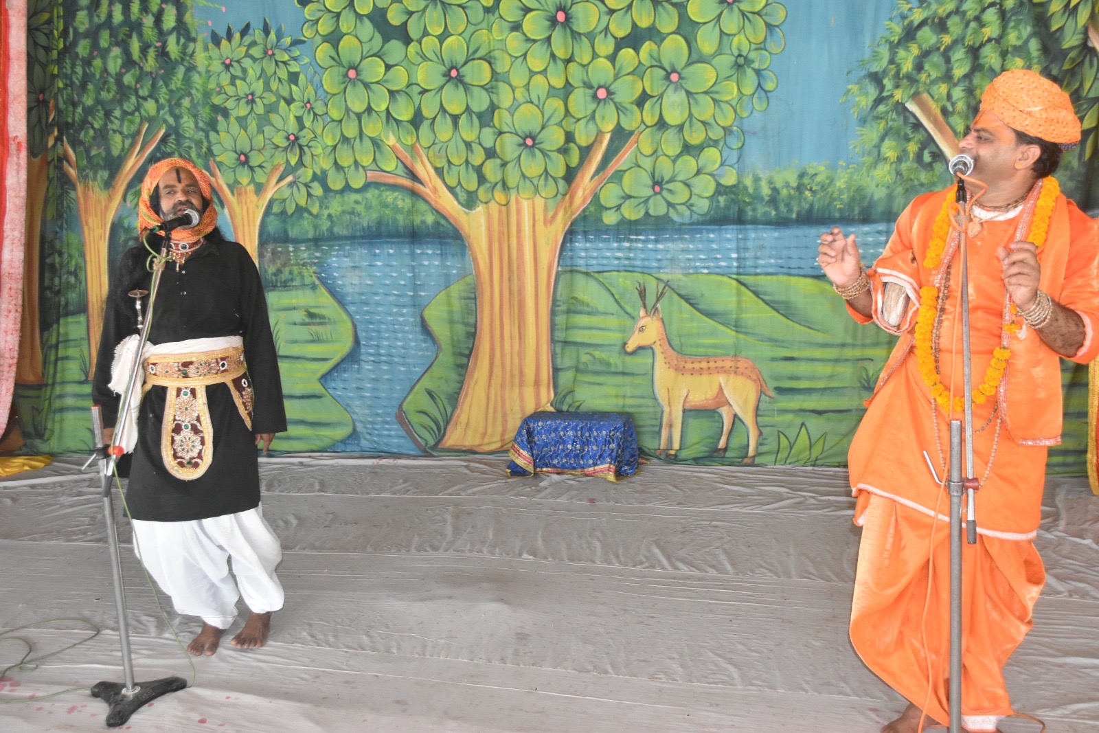 श्री राम लीला समिति बक्सर के तत्वावधान में नगर के रामलीला मंच पर चल रहे 21 दिवसीय विजयादशमी महोत्सव के क्रम में वृंदावन से पधारे श्री नंद नंदन रासलीला एवं रामलीला मंडल के स्वामी श्री करतार बृजवासी के सफल निर्देशन में दसवें दिन सोमवार को दिन में कृष्ण लीला के दौरान “गोवर्धन डाकू” प्रसंग का मंचन किया गया. जिसमें दिखाया गया कि डाकू गोवर्धन एक बहुत बड़ा लुटेरा है जो एक दिन अपने आप को बचाते-बचाते एक जगह चल रही भगवान श्रीकृष्ण की कथा में गया। छुपने के इरादे से वहीं बैठ गया। कथा में भगवान कृष्ण के श्रृंगार का वर्णन चल रहा था। जिसमें कथावाचक ठाकुर जी के सिर पर हीरे माणिक मोती लगे हुए सोने के मुकुट, कमर पर सोने की काथली, हाथ में सोने की छड़ी पैरों में सोने के नूपुर का वर्णन कर रहे थे। डाकू गोवर्धन ने सोचा कि जो व्यक्ति ऊपर से नीचे तक सोना पहनता है उसे लूटने से कितना फायदा होगा और इसी उद्देश्य से वो कृष्ण को ढूंढने लूटने वृंदावन की ओर चल पड़ा। रास्ते में उसे उसी कथावाचक की बेटी भी मिली जो कृष्ण के दर्शन के लिए वृंदावन जा रही थी। दोनों एक साथ चल पड़े और रास्ते में दोनों ही ठाकुर जी का नाम रटते जा रहे थे। जहां डाकू गोवर्धन कृष्ण को लूटने के उद्देश्य से नाम बार-बार रट रहा था जब बहुत समय बाद वे दोनों वृंदावन पहुंचे तो कई दिन तक कृष्ण को ढूंढते रहे। कथावाचक की बेटी कृष्ण की भक्ति में विलीन होकर उन्हें पुकार रही थी और डाकू गोवर्धन सोने के लालच में उन्हें बार-बार पुकार रहा था। अंत में जब कृष्ण भगवान दोनों को दर्शन देते हैं तो कथावाचक की पुत्री उनके दर्शन मात्र से धन्य हो जाती है और कृष्ण उसे अपनी रास सखियों में शामिल होने का वरदान देते हैं। वहीं जब डाकू गोवर्धन कृष्ण का सोना लूटने के उद्देश्य से कृष्ण को छूता है तो उसका भाव बदल जाता है और वो लूटने का भाव छोड़कर सेवा भाव में परिवर्तित हो जाता है। भगवान कृष्ण उसे ये कहकर वरदान देते हैं कि मेरा नाम चाहे तुमने बुरे भाव से ही लिया हो लेकिन उसमें तुम्हारा पूरा समर्पण था और तुम्हारी हर सांस से मेरा नाम सुनाई दे रहा है, इसके लिए मैं तुम्हे अपना सखा होने का वरदान देता हूं।