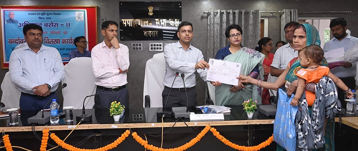 *जिला पदाधिकारी द्वारा अंचल बक्सर, डुमराँव, राजपुर एवं ब्रह्मपुर के कुल 63 भूमिहीन परिवारों को वासगीत पर्चा वितरण किया गया। इसी क्रम में बताया गया कि अभियान बसेरा-2 सरकार की सर्वोच्च प्राथमिकता में सम्मिलित है। पात्र लाभुकों को ज्यादा से ज्यादा बासगीत पर्चा उपलब्ध कराया जाना है।*