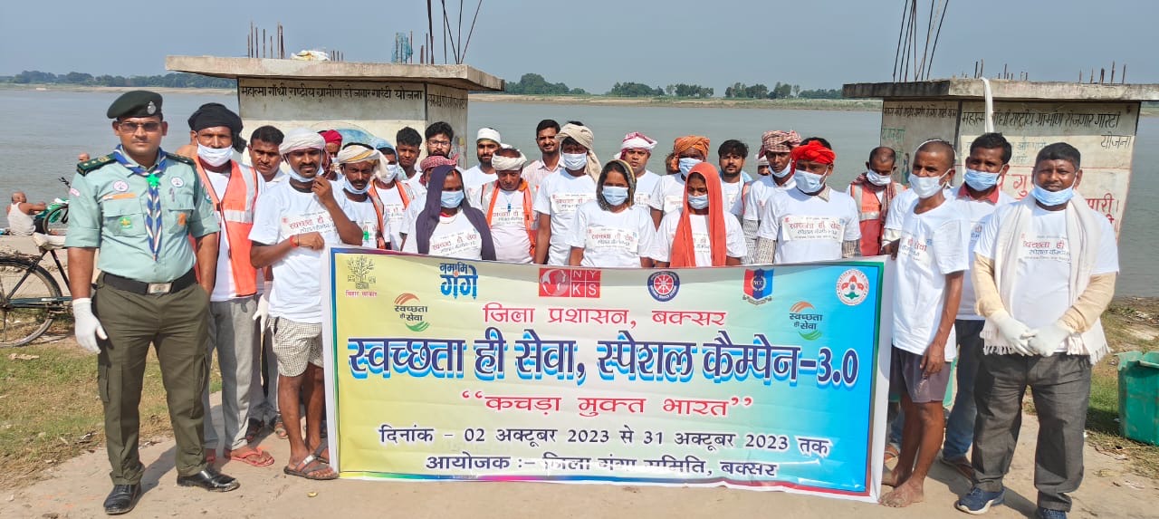 जिला गंगा समिति बक्सर के द्वारा स्वच्छता ही सेवा स्पेशल कैंपेन 3.0 के तहत चौसा के महादेवा घाट पर स्वच्छता/श्रमदान,जागरूकता व शपथ कार्यक्रम आयोजित किया गया। जिला परियोजना अधिकारी जिला गंगा समिति के नेतृत्व में स्थानीय स्वच्छता कर्मियो,आम जनों व जन प्रतिनिधियों के द्वारा महादेवा घाट पर कार्यक्रम चलाया गया। मालूम हो की जिला पदाधिकारी के निर्देश पर स्वच्छता ही सेवा कार्यक्रम के तहत जिले में कई अलग अलग स्थानों पर स्वच्छता जागरूकता से संबंधित कई तरह के कार्यक्रम आयोजित किया जा रहा है। जिला परियोजना अधिकारी ने बताया की स्वच्छता अभियान को बढ़ाने में हम सबकी जिम्मेवारी होनी चाहिए विशेष कर सामुदायिक स्थलों को साफ रखने में हर व्यक्ति की सहभागिता होनी चाहिए। गंगा घाट को साफ व स्वच्छ बनाने हेतु लोगो को ज्यादा से ज्यादा से लोगो की सहभागिता जरूरी है। कार्यक्रम में उपस्थित लोगो द्वारा घाट पर मौजूद लोगो के बीच प्लास्टिक उपयोग न करने के लिए जागरूकता अभियान भी चलाया गया। तत्पश्चात परियोजना अधिकारी द्वारा सभी लोगों को स्वच्छता हेतु शपथ दिलाया गया।*