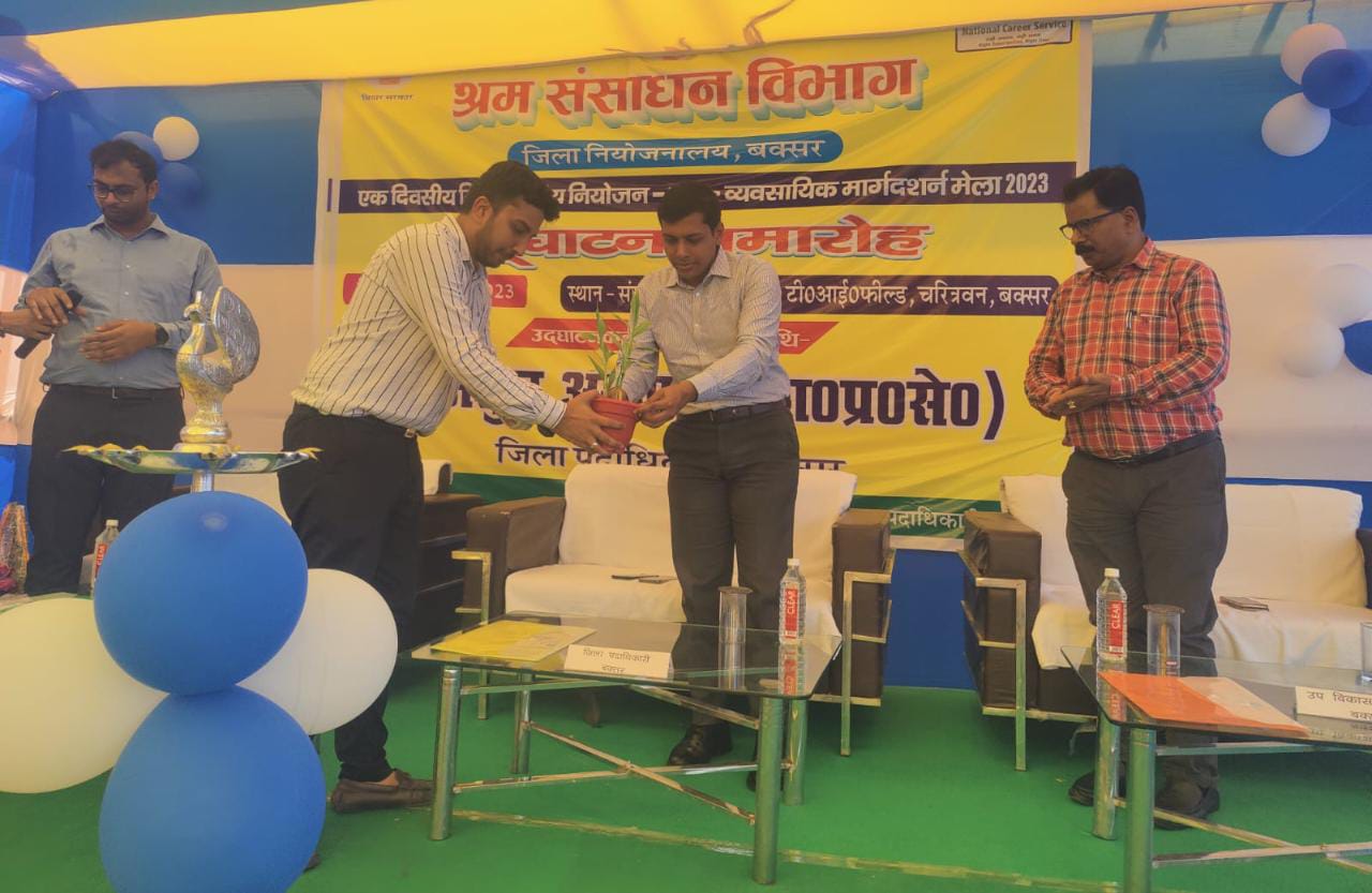 जिला पदाधिकारी बक्सर श्री अंशुल अग्रवाल के द्वारा जिला नियोजनालय बक्सर के तत्वधान में संयुक्त श्रम भवन परिसर में एक दिवसीय नियोजन सह व्यवसायिक मार्गदर्शन मेला का शुभारंभ दीप प्रज्वलित कर किया गया।*