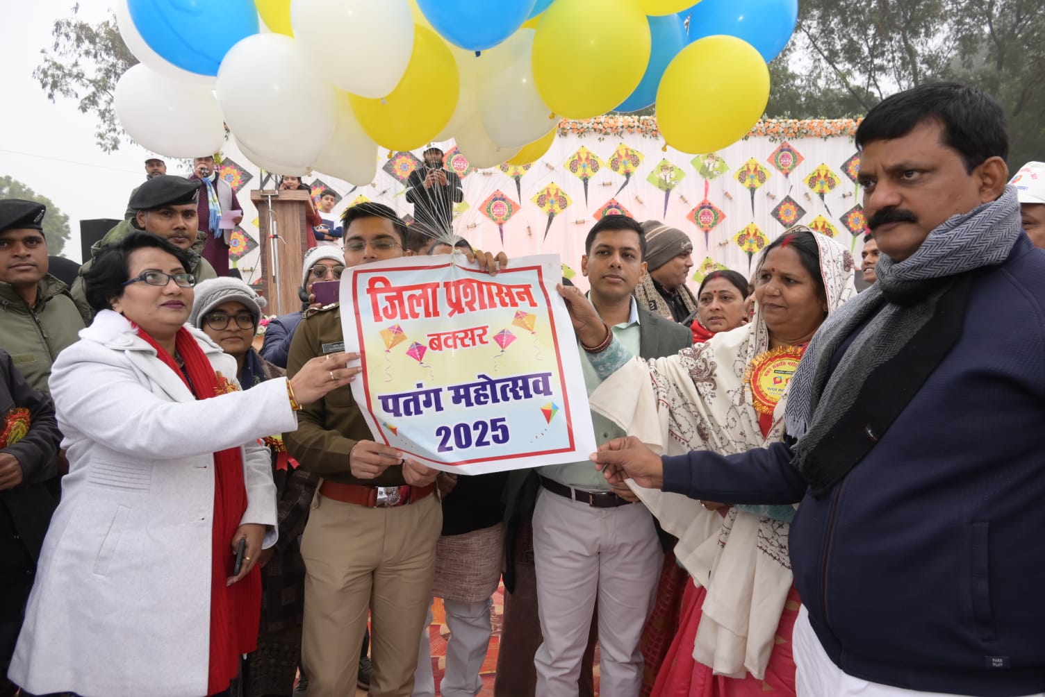 जिला पदाधिकारी बक्सर, श्री अंशुल अग्रवाल द्वारा फीता काटकर मकर संक्रांति कार्यक्रम 2025 का शुभारंभ किया गया। साथ ही पुलिस अधीक्षक बक्सर, श्री शुभम आर्य, जिला परिषद अध्यक्ष श्रीमती सरोज देवी, अध्यक्ष नगर परिषद बक्सर कमरून निशा, जिला परिषद सदस्यों, अन्य माननीय जनप्रतिनिधिगण, सिविल सोसाइटी के सदस्य, प्रिंट एवं इलेक्ट्रॉनिक मीडिया के बंधुगण के द्वारा संयुक्त रूप से बैलून गुच्छ छोड़कर कार्यक्रम का आगाज किया गया।