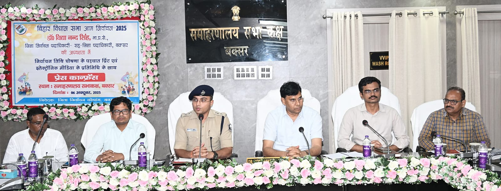 इसी क्रम में आज दिनांक 06 अक्टूबर 2025 को जिला निर्वाचन पदाधिकारी सह जिला पदाधिकारी बक्सर, डॉ विद्यानंद सिंह एवं पुलिस अधीक्षक बक्सर, श्री शुभम आर्य के द्वारा संयुक्त रूप से समाहरणालय परिसर स्थित सभाकक्ष में प्रिंट एवं इलेक्ट्रॉनिक मीडिया के साथ ब्रीफिंग किया गया।