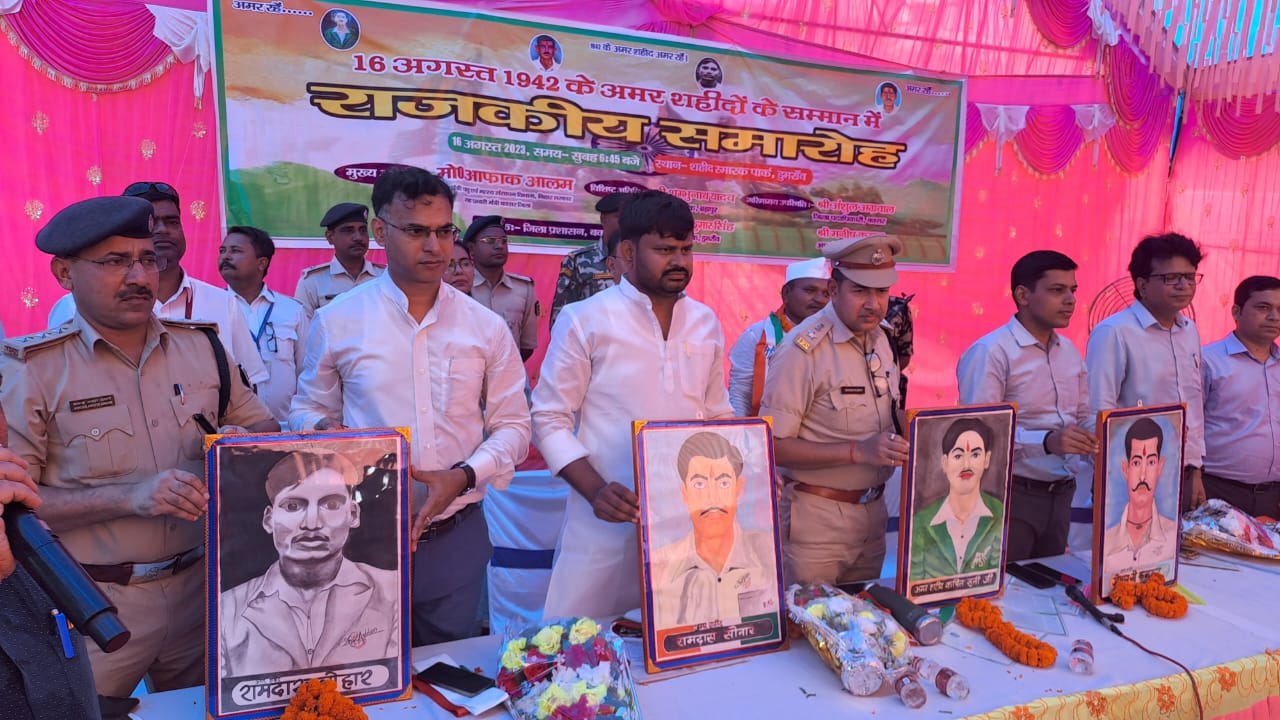 जिला पदाधिकारी महोदय के द्वारा शहीदों को माल्यार्पण किया गया तत्पश्चात शहीदों के परिजनों को सम्मानित किया गया।