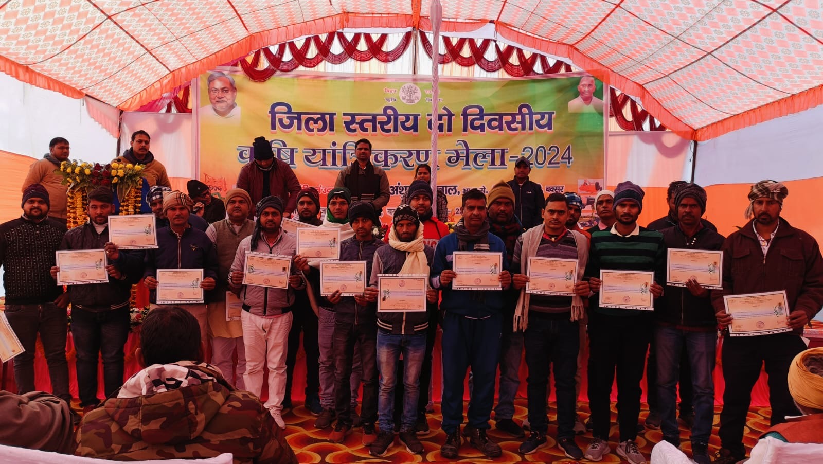 बक्सर: नगर स्थित बाजार समिति के प्रांगण में दिनांक 22 जनवरी से चले आ रहे दो दिवसीय कृषि यांत्रिकरण मेला का समापन दिनांक 23 जनवरी को हो गया। किसानों को संबोधित करते हुए प्रभारी सहायक निदेशक(कृषि अभियंत्रण) श्री शेखर किशोर ने कहा कि वर्तमान समय में पराली प्रबंधन विकराल समस्या के रुप में उभर रही है। इस समस्या से निजात हेतु हम सभी को मिलकर पराली नहीं जलाने का संकल्प लेना होगा। उन्होंने किसानों को बताया कि किसानों द्वारा पराली जलाने पर अक्षांश एवं देशांतर के साथ इसकी जानकारी विभाग को मिल जाती है। इसके आधार पर विभाग द्वारा जाॅंचोपरांत कृषक पंजीकरण को बंद कर दिया जाता है, जिससे किसानों को मिलने वाली कृषि व कृषि से सम्बद्ध विभाग की योजनाओं का लाभ भविष्य में नहीं मिलेेगा। इस परिस्थिति से बचने हेतु कृषक पराली नहीं जलाये। पराली प्रबंधन वाले यंत्र यथा सुपर सीडर, हैप्पी सीडर, स्ट्रा रीपर इत्यादि यंत्रों पर अस्सी प्रतिशत तक अनुदान दिया जा रहा है। इसके के लिए कृषक कृषि विभाग के वेबसाईट पर आॅनलाईन आवेदन कर सकते हैं। मेले में आकर्षण का केन्द्र अमित नर्सरी,चुरामनपुर द्वारा लगाया गया स्टाॅल रहा। उनके द्वारा ‘‘साॅंसे हो रही कम-आओ पेड़ लगाये गये हम’’ थीम के साथ मेले में भ्रमण कर रहे किसानों के बीच संदेश दिया जा रहा था, जिससे किसानों में पेड-पौधा लगाने के प्रति जागरुकता दिखी। मेला में कृषि प्रौद्योगिकी प्रबंध अभिकरण(आत्मा) द्वारा विगत् किसान मेला में फल-फूल-सब्जी में बेहतर प्रदर्शन करने वाले प्रगतिशील कृषकों को पुरस्कृत भी किया गया। फूलगोभी के क्षेत्र में ललन सिंह,धरहरा को प्रथम, गोरख यादव,खहाटाड़ को द्वितीय तथा लक्ष्मण यादव, खरहाटाड़ को तृतीय, पतागोभी के क्षेत्र में पुष्पा देवी,कठार को प्रथम, सुनिल कुमार सिंह,सखुआना को द्वितीय, बैंगन के क्षेत्र में श्रीराम सिंह, गोसाईपुर को प्रथम, शांति देवी, भरखर को द्वितीय, विजय कुमार सिंह,सिमरी को तृतीय, टमाटर के क्षेत्र में सुरेन्द्र सिंह,धरहरा को प्रथम, रविशंकर सिंह,सोनपा को द्वितीय, त्रिलोकीनाथ राम को तृतीय, मिर्च के क्षेत्र में महेश पाण्डेय,ओझवलिया को प्रथम, लक्ष्मण यादव,खरहाटाड़ को द्वितीय, गोरख यादव,खरहाटाड़ को तृतीय, आलू के क्षेत्र में महेश पाण्डेय, ओझवलिया को प्रथम, लौकी के क्षेत्र में विजय पासवान, पोखरहा को प्रथम, सुरन्द्र सिंह, रुप सागर को द्वितीय, सेम के क्षेत्र में गणेश पाण्डेय,भभुअर को प्रथम, कमलेश कुमार यादव,चैसा को द्वितीय, दयाशंकर सिंह,सरेंजा को तृतीय, शिमला मिर्च के क्षेत्र में अभय रंजन राय,डुमराॅंव को प्रथम, ओयस्टर मशरुम के क्षेत्र में संजय कुमार, चरित्रवन,बक्सर को प्रथम, दशरथ सिंह,कठार को द्वितीय, दीपक कुमार, नई बाजार को तृतीय, केला 