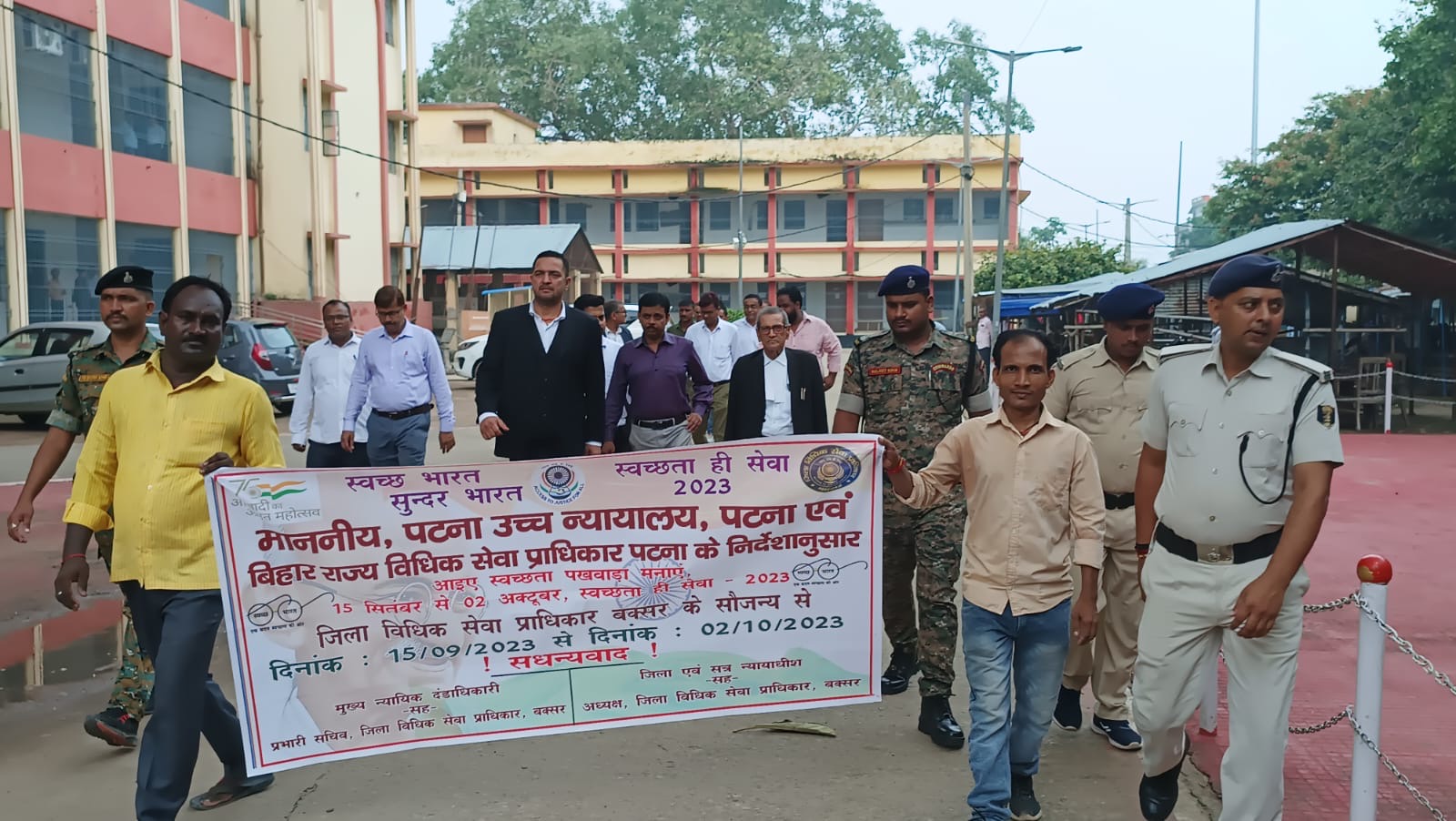 माननीय पटना उच्च न्यायालय, पटना एवं बिहार राज्य विधिक सेवा प्राधिकार, पटना के निर्देशानुसार आनंद नंदन सिंह, जिला एवं सत्र न्यायाधीश सह अध्यक्ष, जिला विधिक सेवा प्राधिकार, बक्सर देवराज, मुख्य नायक दंडाधिकारी सह प्रभारी सचिव, जिला विधिक सेवा प्राधिकार, बक्सर एवं बबन ओझा अध्यक्ष, जिला बार एसोसिएशन द्वारा एक स्वच्छता जागरूकता रैली निकाली गई। जागरूकता रैली के दौरान सभी ने जिला बार एसोसिएशन, व्यवहार न्यायालय, बक्सर परिसर साथ ही कैंटीन, पुस्तकालय भवन, हाजत आदि का भ्रमण कर औचक निरीक्षण किया। मौके पर आनंद नंदन सिंह जिला एवं सत्र न्यायाधीश, बक्सर ने उपस्थित अधिवक्ताओं से कहा कि पिछले आठ वर्षों में “स्वच्छ भारत अभियान” ने देश के कोने-कोने तक अपनी पहुंच बनाई है। आज इस अभियान की बदौलत लाखों लोगों का जीवन जीने का अंदाज बदल गया है। इस अभियान के चलते 70 लाख से अधिक घरों, सामुदायिक और सार्वजनिक शौचालयों का निर्माण हुआ है। जिसके चलते शहरी भारत में स्वच्छता के क्षेत्र में एक क्रांति आ गई है। इस अभियान में सबसे ज्यादा महिलाओं, ट्रांसजेंडर समुदायों और दिव्यांगों की जरूरतों को प्राथमिकता दी है। केंद्र सरकार ने महात्मा गांधी के स्वच्छ भारत के सपने को पूरा करने लिए 2 अक्टूबर 2014 को स्वच्छ भारत अभियान शुरू किया था। केन्द्र सरकार के अपील के बाद इस अभियान से भारत के कई नामचीन हस्तियां, न्यायालय सभी जिला कार्यालय आदि भी बाद में जुड़ गए है। इस अभियान का उद्देश्य अगले पांच वर्ष में स्वच्छ भारत का लक्ष्य प्राप्त करना रखा गया है। मौके पर उन्होंने व्यवहार न्यायालय, बक्सर परिसर, साथ ही जिला बार एसोसिएशन, पुस्तकालय आदि भवन को साफ सुथरा रखने के लिए कई आवश्यक दिशा निर्देश दिए। इस अवसर पर देवराज मुख्य न्यायिक दंडाधिकारी, बक्सर ने कहा कि हमें अपने व्यवहार न्यायालय परिसर को स्वच्छ रखने के लिए खुद जागरूक होना होगा। इधर-उधर कचरा ना फेंक कर इस कचरे को कूड़ेदान में ही डालें। यत्र यत्र मलमूत्र का त्याग न करें। इस सोच के साथ आगे बढ़ना होगा। माननीय, पटना उच्च न्यायालय, पटना के निर्देश के आलोक में जिले में 2 अक्टूबर 2023 तक जिला विधिक सेवा प्राधिकार द्वारा स्वच्छता जागरूकता अभियान चलाया जाएगा। जिसके अंतर्गत अनेक गतिविधियों की जाएगी। जिसमें विद्यालयों एवं महाविद्यालय में निबंध लेखन प्रतियोगिता का आयोजन करवाना। जागरूकता कार्यक्रम जिले के हर जगह पर करवाना। जागरूकता रैली निकालना, लोगों को स्वच्छता के बारे में प्रेरित करना आदि का कार्य किया जाएगा। मौके पर कार्यालय कर्मी सुधीर कुमार, सुमित कुमार, संजीव कुमार, मनोज कुमार रवानी वही वरीय लिपिक संजय कुमार, जिला नजीर संतोष कुमार द्विवेदी, प्रभारी प्रशासन राजीव कुमार, वि