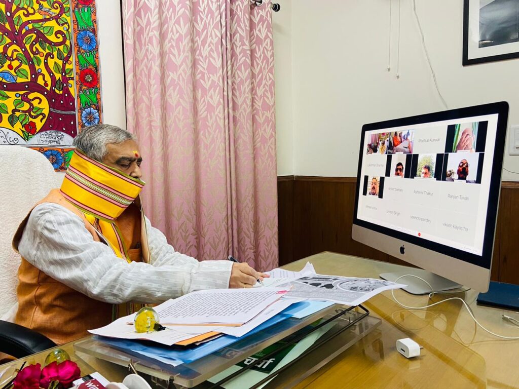 पंचकोशी परिक्रमा यात्रा का वीडियो कॉन्फ्रेंसिंग के माध्यम से शुभारंभ करते केंद्रीय स्वास्थ्य एवं परिवार कल्याण राज्य मंत्री अश्विनी कुमार चौबे।