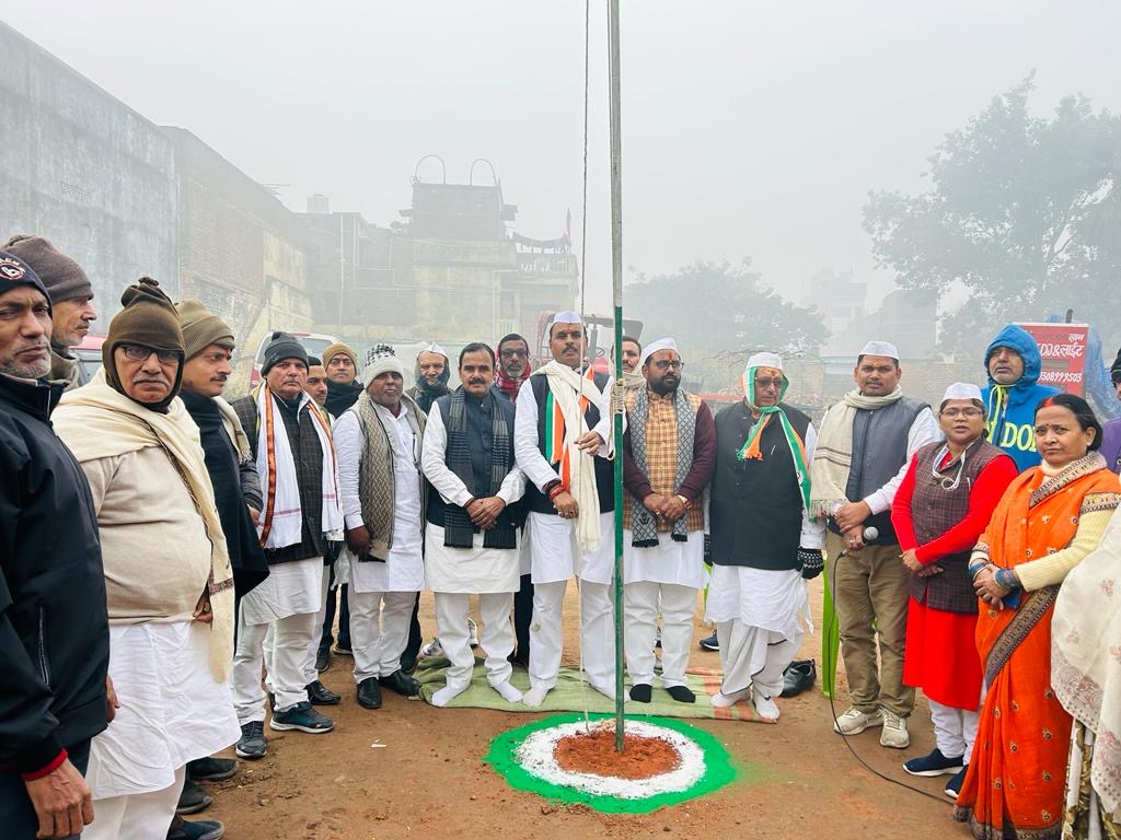 बक्सर जिला कांग्रेस कमेिटी के अध्यक्ष डॉ मनोज कुमार पांडे द्वारा 75 वी गणतंत्र दिवस के अवसर पर बक्सर नगर स्थित श्री चंद्र मंदिर पर झंडा तोलन किया गया एवं उसके बाद शहीद भगत सिंह पर माल्यार्पण किया अपने संबोधन में डॉ पांडे ने कहा कि बक्सर के ऐतिहासिक श्री चंद मंदिर पर अंग्रेजों द्वारा हुकूमत पर विजय की झंडा तोलन ऐतिहासिक एवं गौरव में भारत के शहीदों को याद कर उनके अधूरा सपना को साकार करने के लिए संकल्प हम सब आज ले रहे हैं डॉ पांडे ने कहा कि विश्वामित्र की धरती से ही देश की दिशा और दशा का मानचित्र रचा गया था जिसे हम सब सदैव तत्पर रहकर उनको पूरा करेंगे तत्पश्चात बक्सर जिला कांग्रेस कमेिटी कार्यालय पर झंडतोलन किया गया, जिला कांग्रेस अध्यक्ष डॉ मनोज पांडे ने अपने संबोधन में आम जनता को संबोधित करते हुए कहा कि हमारे महान विभूतियां और पूर्वजों के अथक प्रयास से हमें आजादी मिली एवं हम आज भी परंपरागत रूप से गणतंत्र दिवस एक समारोह के रूप में मनाते आ रहे हैं हमारे महान पूर्वजों नेता देश के लिए अपनी जान निछावर किए हैं उन सभी नेताओं को मैं नमन करता हूं डॉ पांडे ने कहा कि देश की एकता और अखंडता के लिए हम सभी तन और मन से सदैव तत्पर रहने का संकल्प लेते हैं झंडा तोलन समारोह में प्रदेश कांग्रेस के प्रतिनिधि डॉ प्रमोद कुमार ओझा वरिष्ठ कांग्रेस नेता कामेश्वर पांडे राम प्रसंग द्विवेदी डा सत्येंद्र कुमार ओझा संजय पांडे अभय कुमार मिश्रा बबन तुरहा अशोक पांडे रोहित उपाध्याय त्रियोगी नारायण मिश्र उपेंद्र ओझा महिमा उपाध्याय राजनारायण दुबे सुधीर कुमार चौबे अजय ओझा श्रीमती निर्मला देवी बुच्चा उपाध्याय श्रीमती कंचन देवी महेंद्र चौबे अजय राय जी वार्ड पार्षद दिनेश जी धनजी पांडे श्रीमती कुमकुम देवी सहित सैकड़ो लोगों ने गणतंत्र दिवस धूमधाम से मनाया