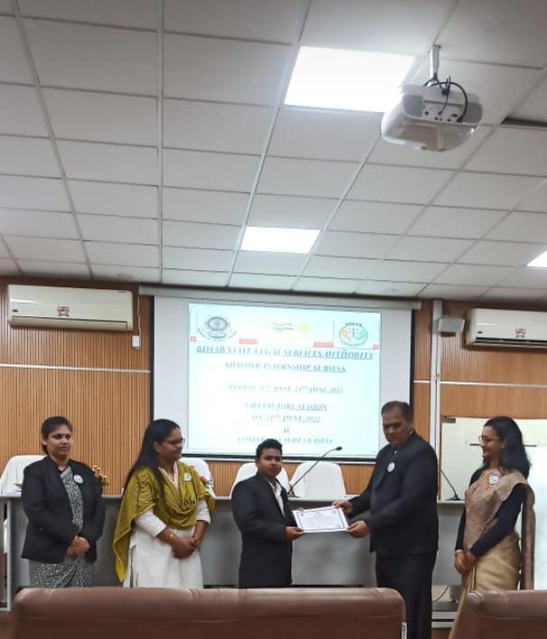 बिहार राज्य विधिक सेवा प्राधिकार पटना द्वारा विगत माह समर इंटर्नशीप का आयोजन कराया गया था जिसमे बक्सर से सुन्दरम कुमार का चयन किया गया चयन के पश्चात चार जून से 23 जून तक जिला विधिक सेवा प्राधिकार रोहतास सासाराम में अपर जिला एवं सत्र न्यायधीश सह इंचार्ज सेक्रेटरी ब्रिजेश मणि त्रिपाठी जिला विधिक सेवा प्राधिकार रोहतास सासाराम के मार्गदर्शन में इंटर्नशीप पूरा किया गया इस दौरान विभिन्नप्रत्येक दिन अलग-अलग न्यायालय, कार्यालय, मध्यस्थता केंद्र, विधिक सेवा केंद्र, फ्रंट ऑफिस, विधिक जागरूकताजेल विजिट , किशोर न्याय परिसद ,बाल कल्याण समिति शिविर के साथ रिमांड अधिवक्ता/रिटेनर अधिवक्ता विभागों में जाकर उसके बारे मे जानकारी दिया गया । उसके बाद सफलता पूर्वक सुमर इंटर्नशिप पूरा करने के पश्चात बिहार राज्य विधिक सेवा प्राधिकार (बालसा) पटना के हाल में माननीय माननीय जस्टिस पटना हाइकोर्ट ) राजीव रंजन ,,बिहार राज्य विधिक सेवा प्राधिकार, मेम्बर सेक्रेटरी (बिहार राज्य बिधिक सेवा प्राधिकार के हाथों आज 24 जून को प्रसस्ति पत्र देकर सुन्दरम कुमार को सम्मनित किये एवं उज्ज्वल भविष्य की कामना किये इस दौरान जॉइंट सेक्रेटरी धृति जासलिन शर्मा (बालसा) रोहित कुमार रजिस्टार ( बालसा ) ,किरण ओझा रजिस्टार ( बालसा )मिस आरती कुमारी रजिस्टार (बालसा) उपस्थित रहे ।