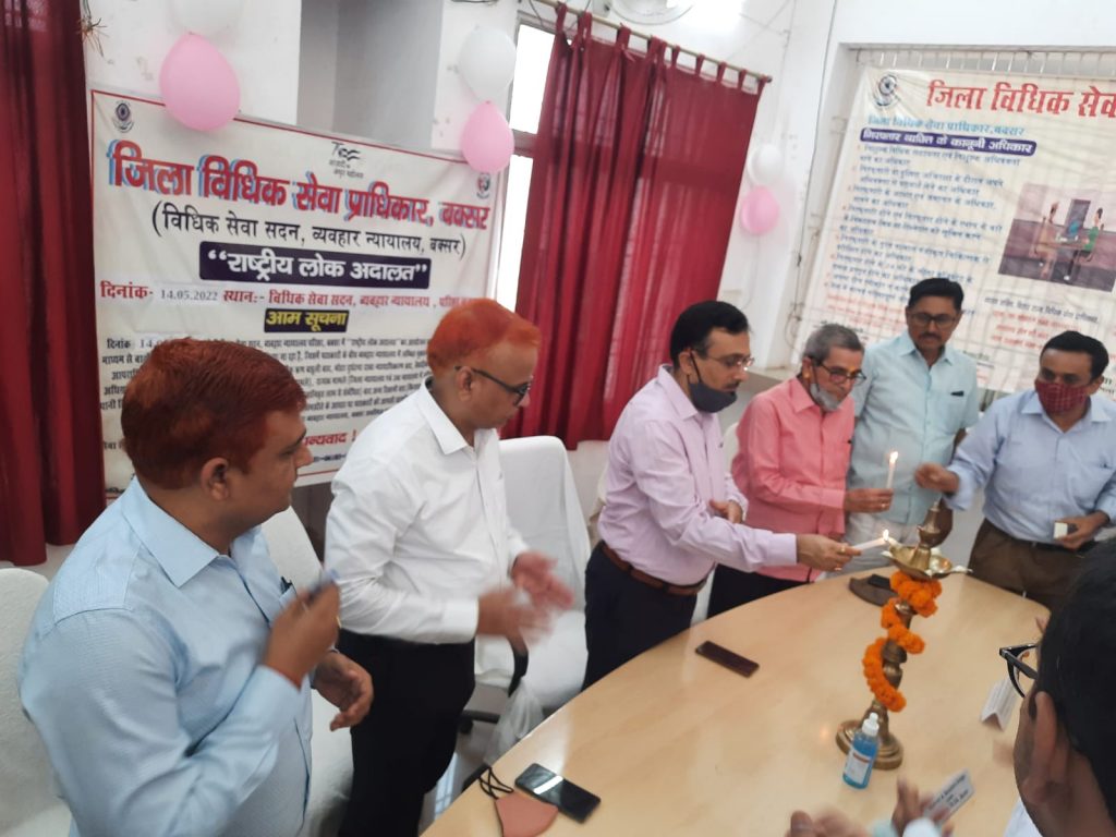 वाद का निपटारा के लिए बनाए गए थे कुल सोलह बेंच- लगभग दो करोड़ बाइस लाख तेरह हजार सात सौ अरसठ रुपए के मुकदमों का कराया गया निपटाराजिला विधिक सेवा प्राधिकार, बक्सर के तत्वावधान में आज शनिवार 14 मई को वर्ष 2022 की द्वितीय राष्ट्रीय लोक अदालत का आयोजन किया गया। कार्यक्रम का उद्घाटन अंजनी कुमार सिंह, जिला एवं सत्र न्यायाधीश -सह-अध्यक्ष, जिला विधिक सेवा प्राधिकार, बक्सर, जिला बार एसोसिएशन के अध्यक्ष बबन ओझा, अपर जिला एवं सत्र न्यायाधीश प्रथम धीरेंद्र बहादुर सिंह व्यव्हार न्यायालय, बक्सर, और उपस्थित अन्य गणमान्य लोगों ने दीप प्रज्ज्वलित कर किया। मौके पर न्यायिक पदाधिकारी व कार्यालय कर्मचारी मौजूद रहे। लोक अदालत पूर्वाहन दस तीस बजे शुरू की गई। अपराह्न पाच बजे तक चले इस लोक अदालत में विभिन्न वाद के 711 मामले का निपटारा कराया गया। इस दौरान अपने संबोधन में जिला न्यायाधीश ने कहा कि, लोक अदालत सुलभ और एक ही दिन में मुकदमे के निपटारे का सुलभ रास्ता है। कोई भी व्यक्ति अपने वाद का निपटारा सुलह समझौते के माध्यम से करा सकता है। मंच संचालन कर रहे अपर जिला एवं सत्र न्यायाधीश -सह-सचिव, जिला विधिक सेवा प्राधिकार, धर्मेंद्र कुमार तिवारी ने कहा कि इस अवसर को हम लोग एक राष्ट्रीय पर्व के तौर पर मनाते हैं। राष्ट्रीय लोक अदालत का आयोजन इस उद्देश्य से किया जाता है कि व्यवहार न्यायालय पर बढ़ रहे मुकदमों के बोझ को कम किया जा सके। साथ में लोगों को सुलभ न्याय उपलब्ध करवाना है। साथ ही राष्ट्रीय लोक अदालत में सम्मिलित होने वाले सभी आगंतुकों का धन्यवाद ज्ञापन भी दिया। मौके पर अपर जिला एवं सत्र न्यायाधीश -सह – सचिव, जिला प्राधिकार, बक्सर धर्मेंद्र कुमार तिवारी ने कहा कि लोक अदालत जनता की अदालत है जिसमे आपकी सहमति से ही आप के द्वारा किया गए मुकदमो को सुलह के आधार पर निपटारा करवाया जाता है। दोनो पक्षों के सुलह होने पर अवार्ड बनता है, जिससे दोनो पक्षो को दिया जाता है और एक कॉपी न्यायालय में भी रखा जाता है। आज के राष्ट्रीय लोक अदालत में बैंक के 410 व भारत संचार निगम लिमिटेड के 5 , आपराधिक 301 वाद, चेक बाउंस के 07, मोटर वाहन अधिनियम के 3, श्रम अधिनियम के 0, विद्युत वाद के 57 मामले का निपटारा कराया गया। जिले के विभिन्न बैंकों ने 410 मामलों में हुए निष्पादन में इस दौरान दो करोड़ बाइस लाख तेरह हजार सात सौ अरसठ रुपए की रिकवरी किया। मौके पर राजेश कुमार त्रिपाठी, रिंकी कुमारी, डिम्पी कुमारी, सीमा कुमारी, रमेश कुमार, राकेश रंजन सिंह, अविनाश शर्मा, आशुतोष कुमार सिंह, कमलेश सिंह देव, मुक्तेश मनोहर, ब्रजकिशोर सिंह, विवेक राय, नितिन त्रिपाठी,अवनींद्र प्रकाश, राकेश रंजन सिंह, हमजा आलम, पैनल अधिवक्ता रंग बहादुर तिवारी, विष्णु दत्त दिवेदी, ज्योति प्रका