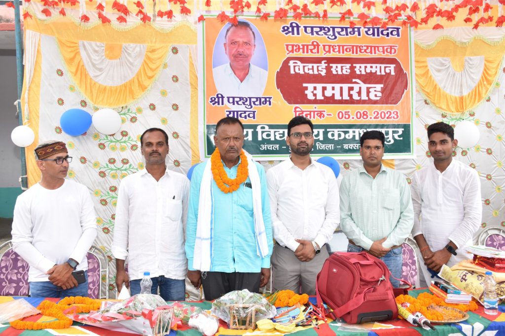 श्री परशुराम यादव प्रभारी प्रधानाध्यापक का सेवानिवृत्ति के बाद स्कूल के सभी अध्यापक गण एवं आम जनता के द्वारा विदाई समारोह एवं सम्मान सभा किया गया कहा गया है श्री परशुराम शिक्षा के क्षेत्र में काफी उत्कृष्ट कार्य किए हैं उन्होंने बच्चों को पढ़ने के लिए काफी प्रेरित किया इस मौके पर गणमान्य लोग उपस्थित रहे मध्य विद्यालय कंधरपुर अंचल डुमराँनव जिला बक्सर से सेवानिवृत्त हुए