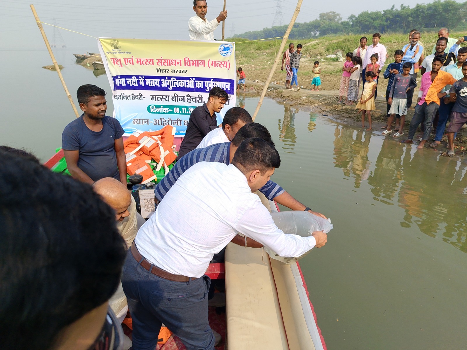 *उद्देश्य:- नदियों के प्रति किलोमीटर मत्स्य उत्पादन में अभिवृद्धि, गंगा नदी के मूल प्रजातियों का जर्मप्लाज्म का पुनर्स्थापन, जैव विविधता में संतुलन एवं संरक्षण, नदियों के जलीय गुणवता को बेहतर करना एवं मछुआरों का आर्थिक एवं सामाजिक उत्थान।*