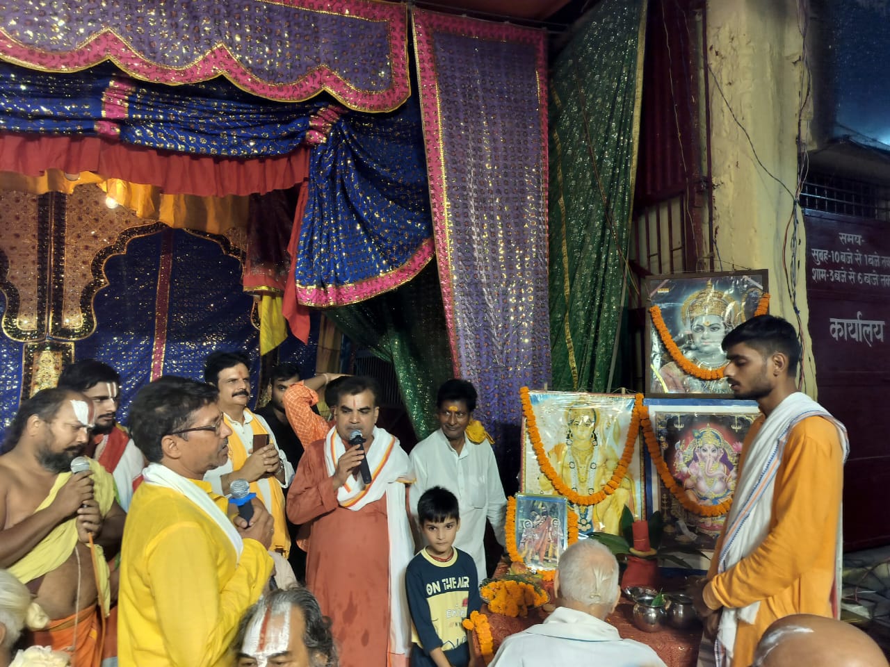 इस दौरान मुख्य यजमान के रूप में समिति के कार्यकारी अध्यक्ष रामावतार पाण्डेय द्वारा गणेश जी व अन्य देवताओं का विधिवत पूजन व आरती किया गया। पूजन के दौरान बसांव मठ से पधारे दर्जनों वेदपाठी छात्रों के वैदिक मंत्रोच्चार से पुरा रामलीला मैदान गुंजायमान हो गया। पूजन के नेतृत्व जिले के प्रतिष्ठित विद्वान डॉ0 नारायण जी शास्त्री व अन्य सहयोगी विद्वानों द्वारा किया गया। जिसमें मंदिरों से पधारे वेदपाठी ब्रम्हचारियों ने सहयोग किया.